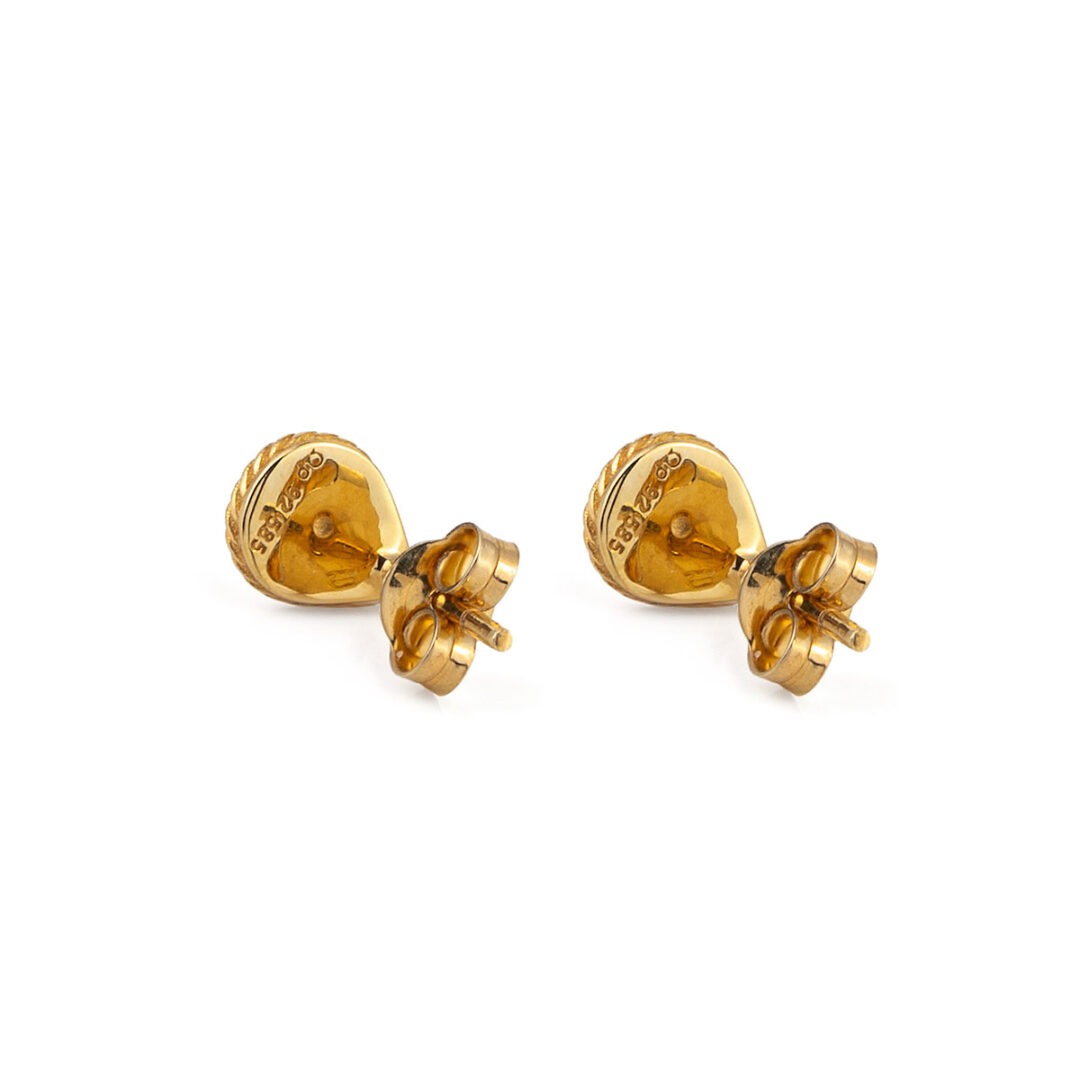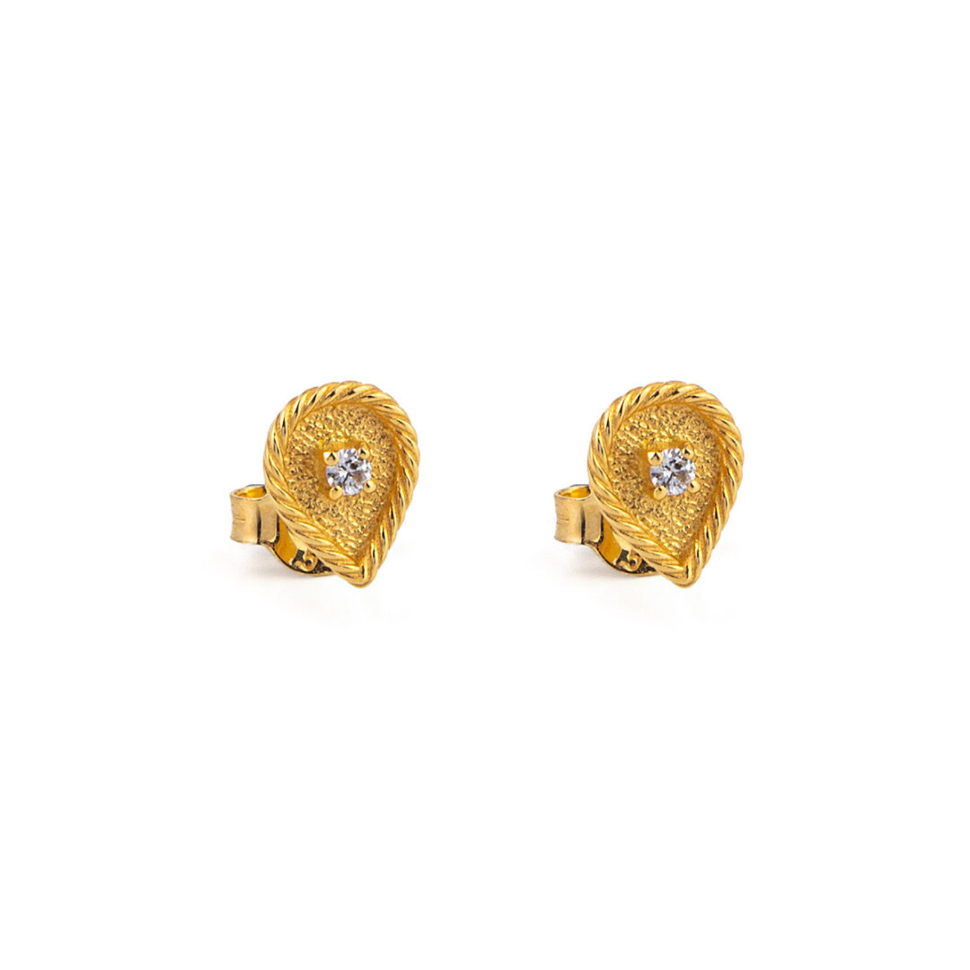 Teardrop Stud Earrings with Zircon – 14K Solid Yellow Gold