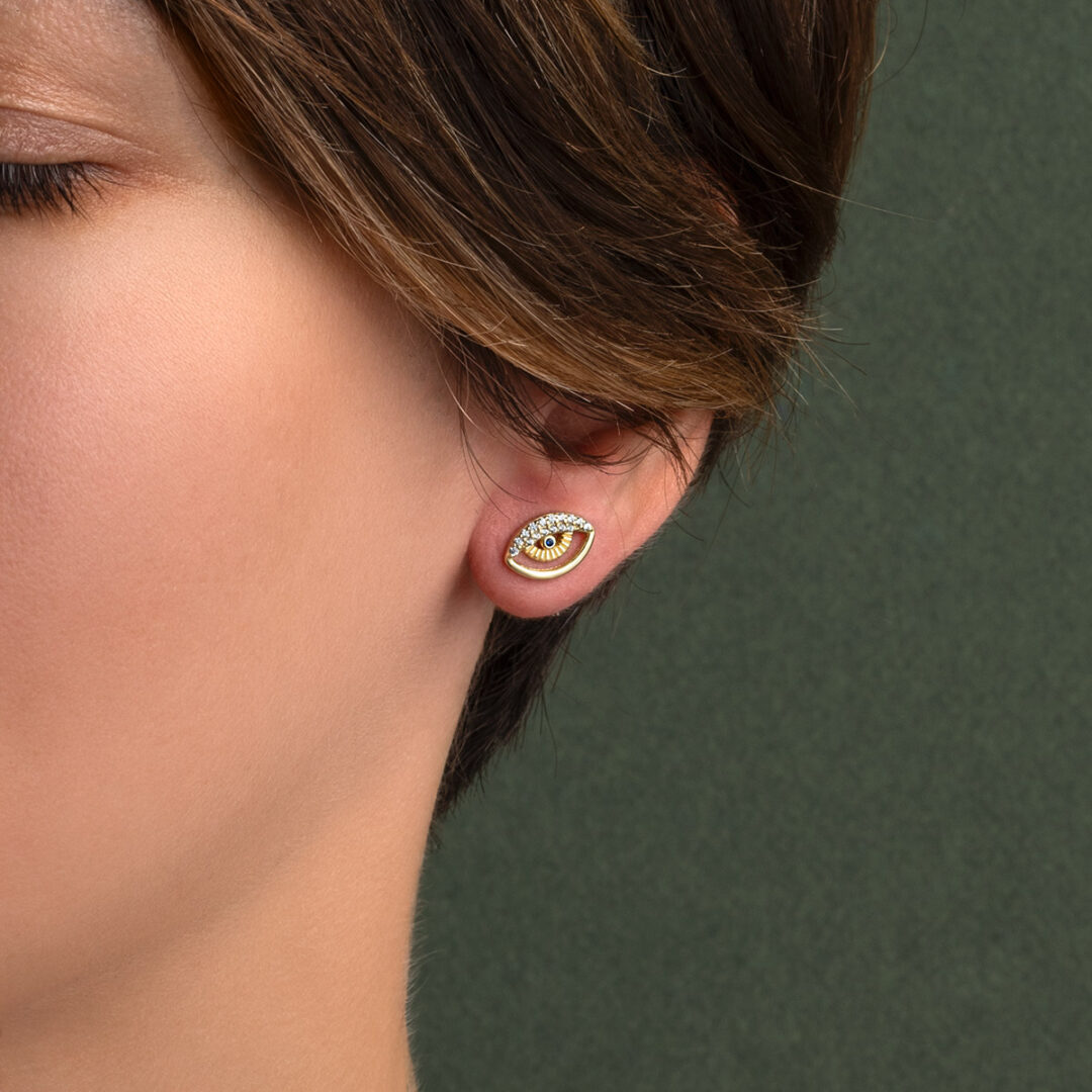 Tiny Eye Stud Earrings – 925 Sterling Silver and Gold Plated