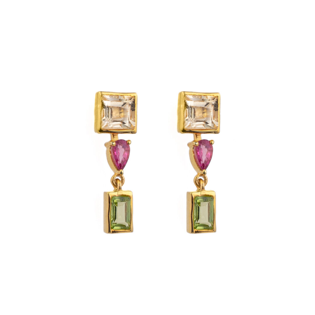 Tourmaline and Peridot Dangle Earrings