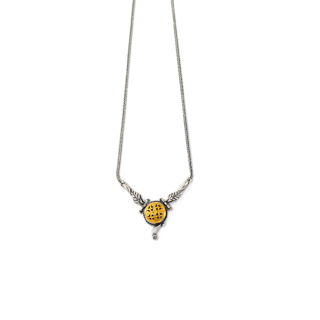 Byzantine vintage style necklace in sterling silver 925 with engravings and decorations.