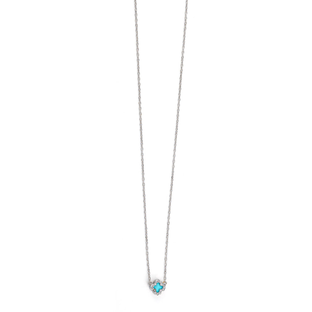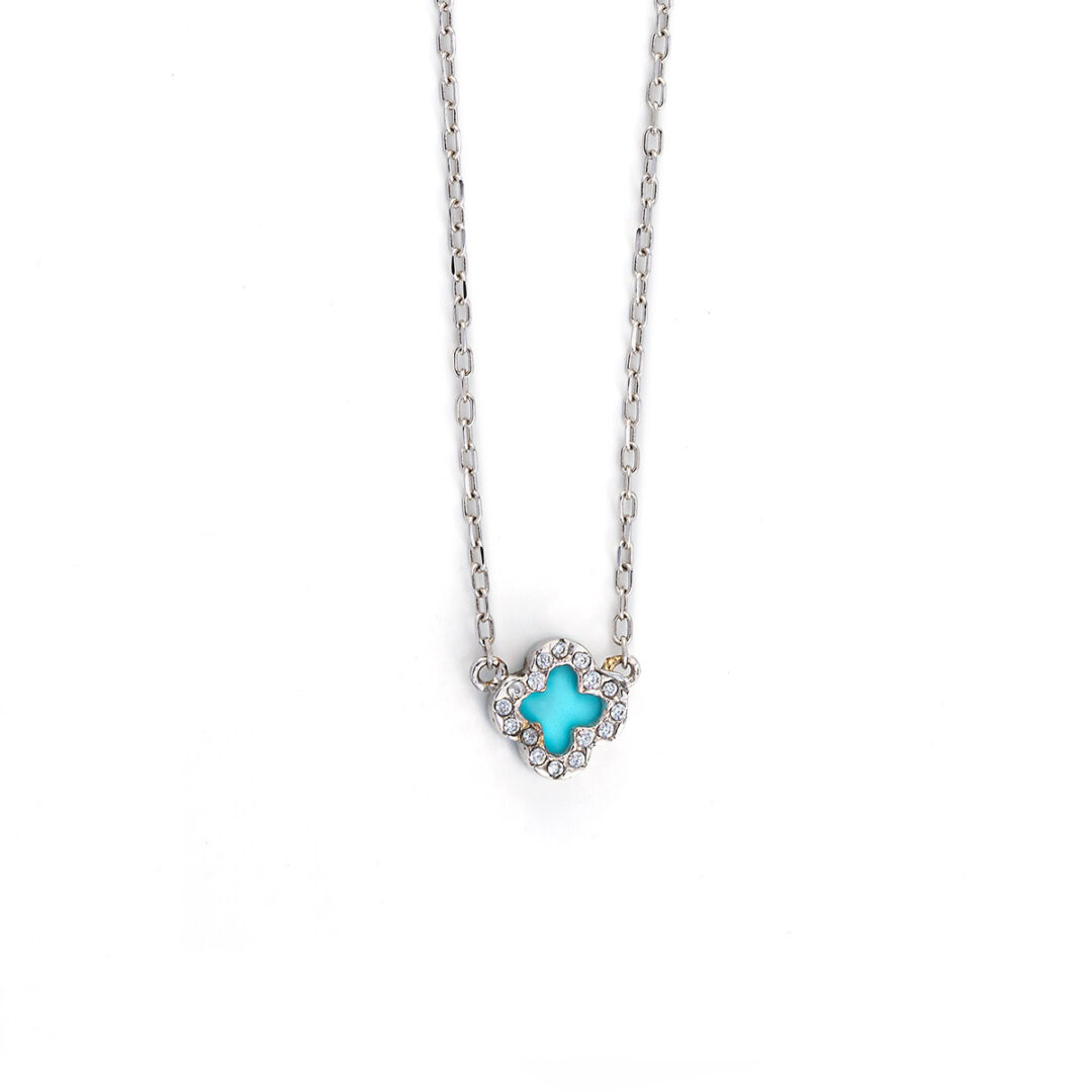 Turquoise cross 14K Gold Necklace with white zircons. Made in 14K gold. Handmade.