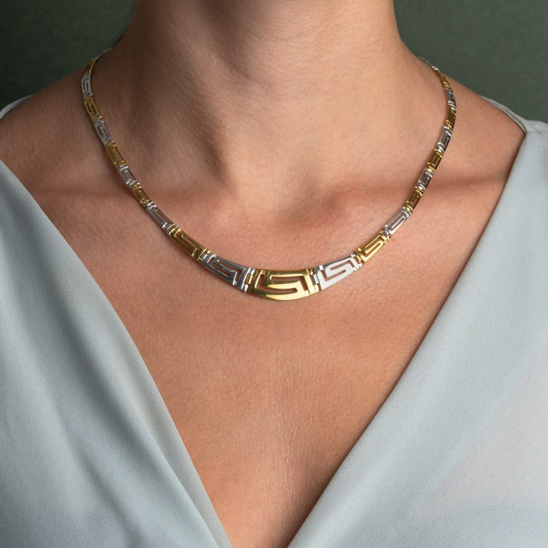 Meandros design is a decorative border constructed from a continuous line, shaped into a repeated motif. Such a design is also called the Greek fret or Greek key design, although these are modern designations. On the one hand, the name “meander” recalls the twisting and turning path of the Meander River in Asia Minor, and on the other hand, as Karl Kerenyi pointed out, “the meander is the figure of a labyrinth in linear form” the meaning is that there is no beginning and no end in some cases so it becomes the symbol of long life and eternity.