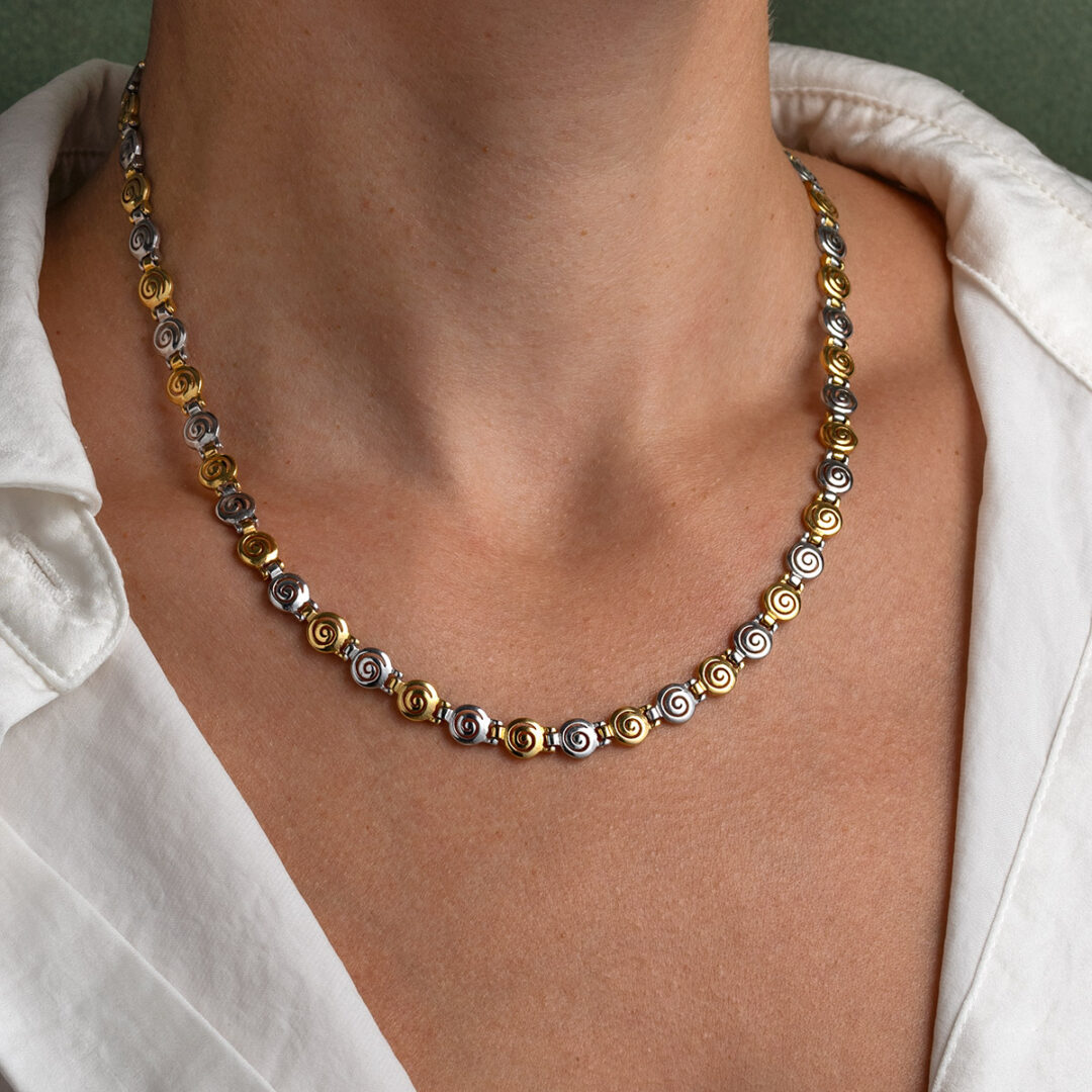 Two Tone Spiral Necklace in 925 Sterling Silver