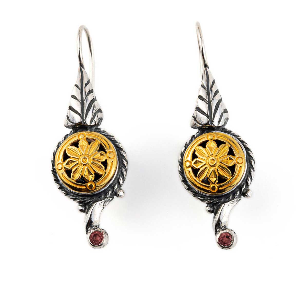 Vintage Engraved Flower Drop Earrings – silver and gold plated