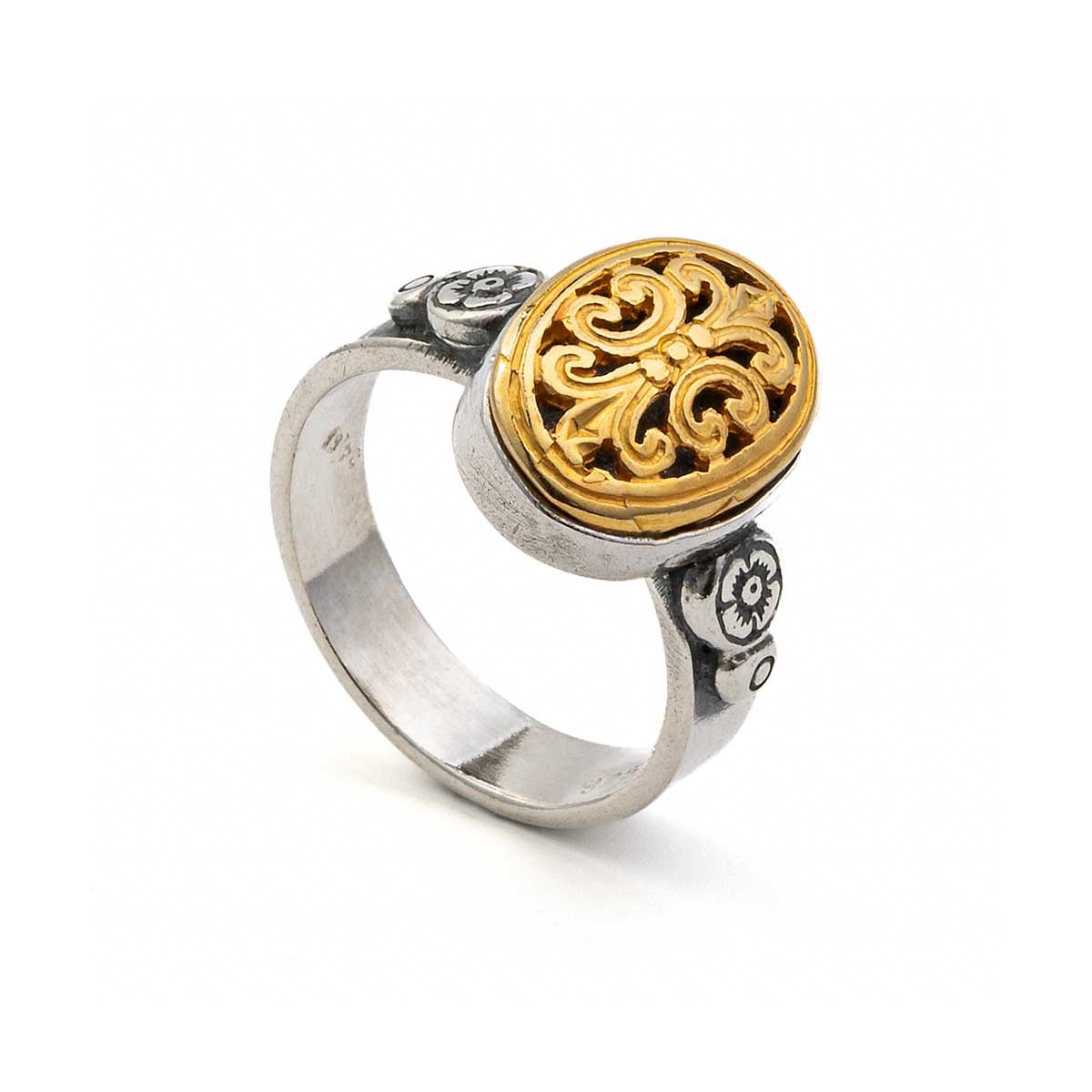 Vintage Traditional Ioannina Ring 925 Silver and Gold Plated