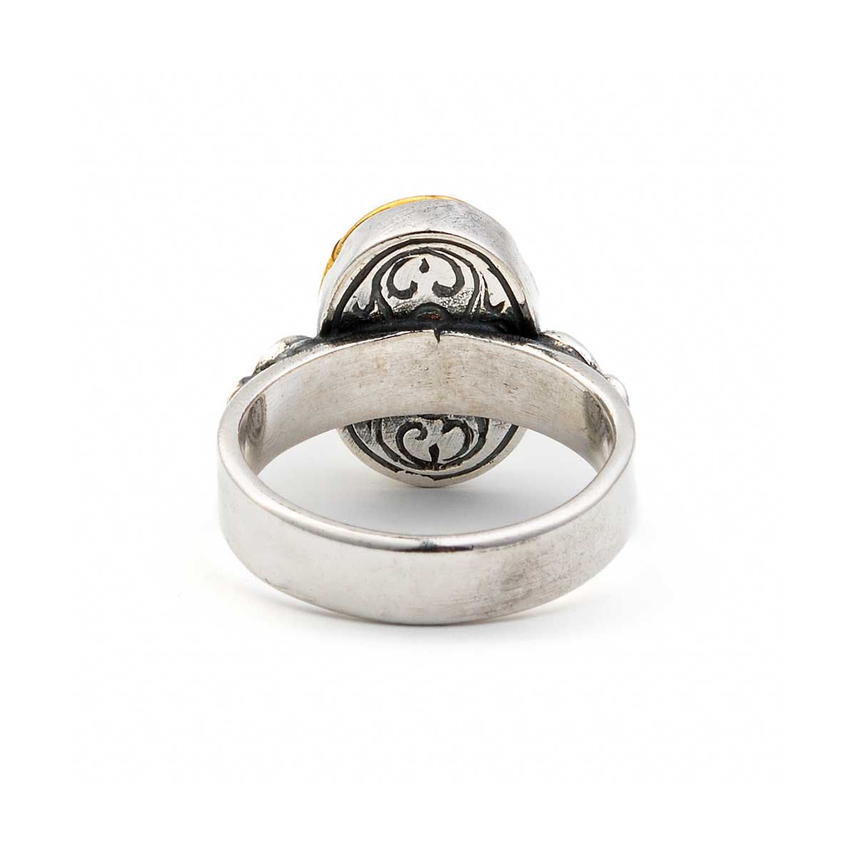 This ring is inspired by Byzantine Historical period respecting Greek traditional art. A very elegant ring decorated with engravings.