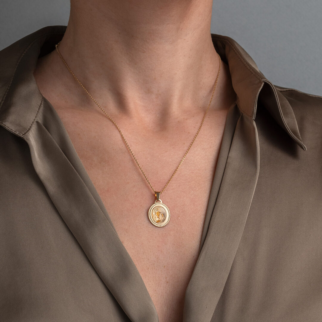 Virgin Mary and Jesus Pendant – 14K Gold