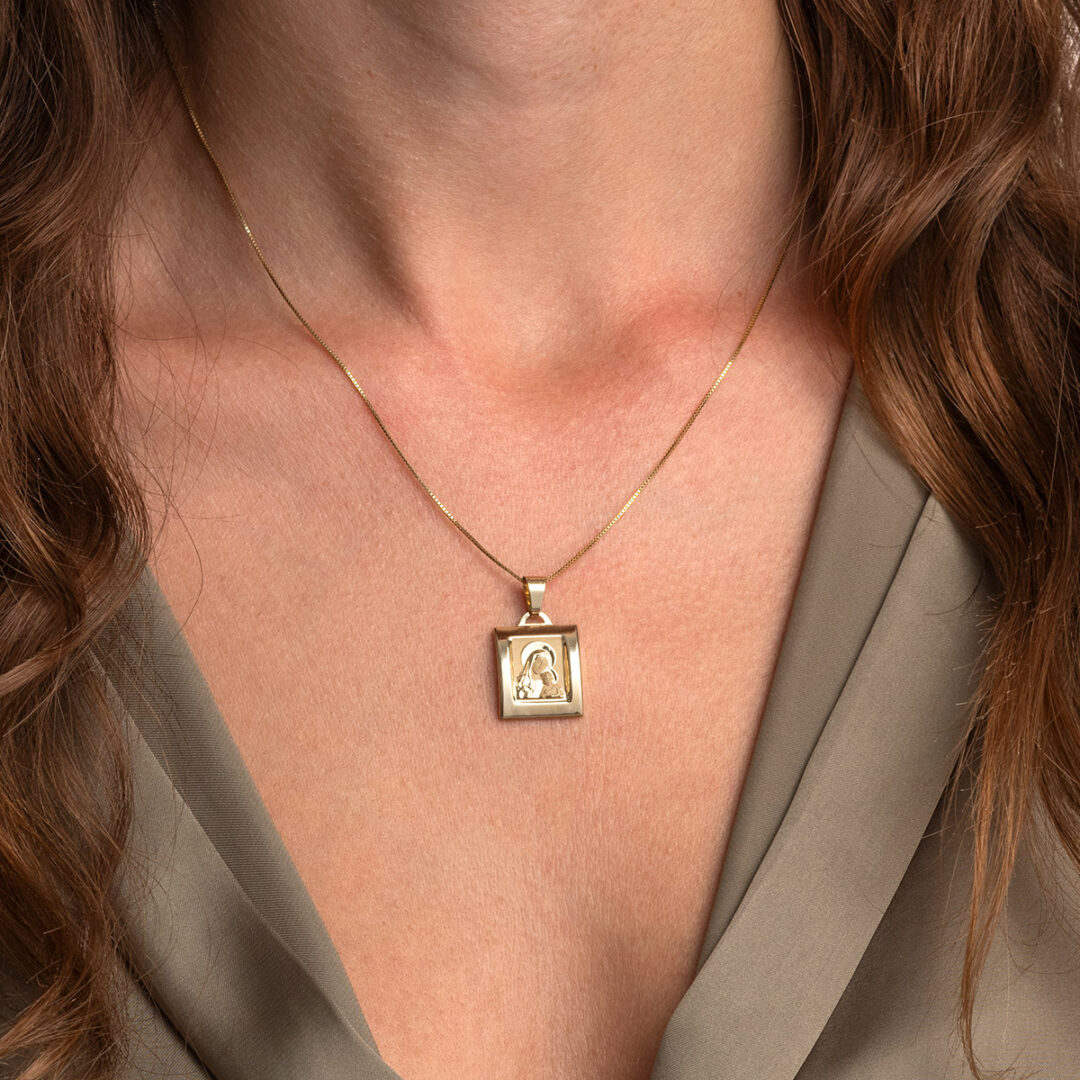 A beautiful pendant with Virgin Mary and child Jesus icon.