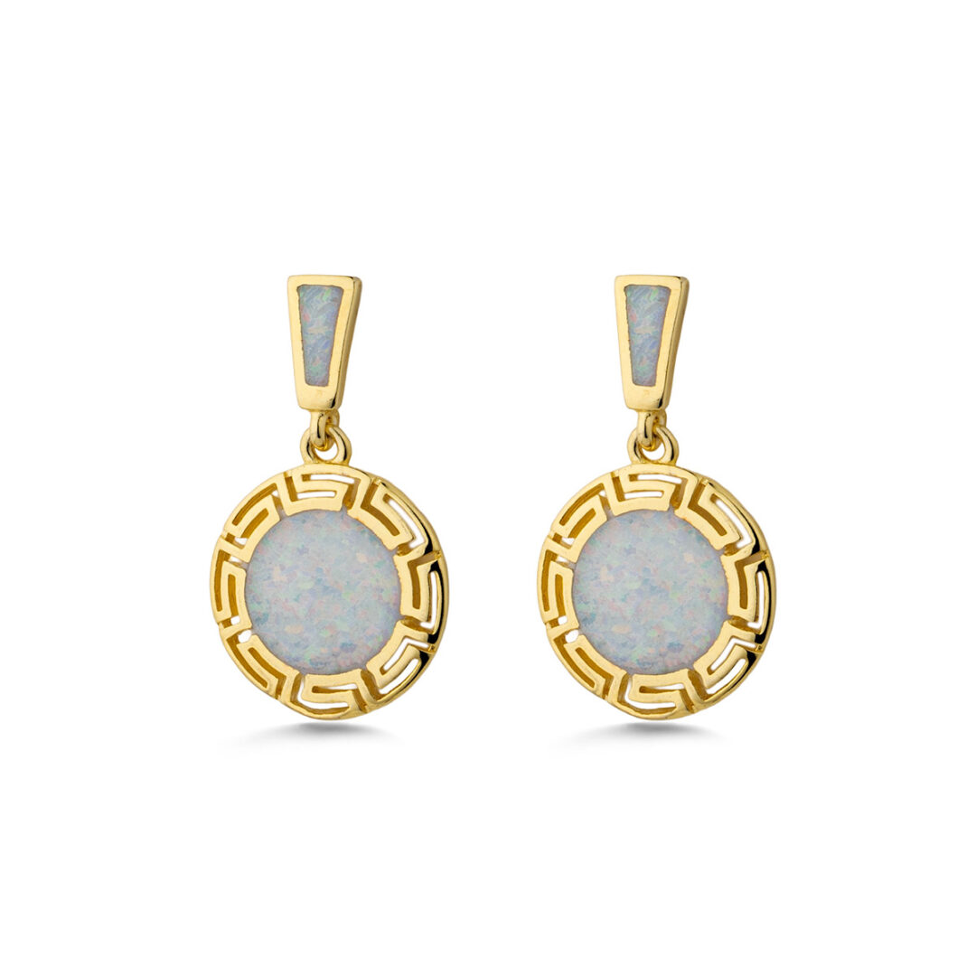 White Opal pair of earrings with Greek Key – Meander design.