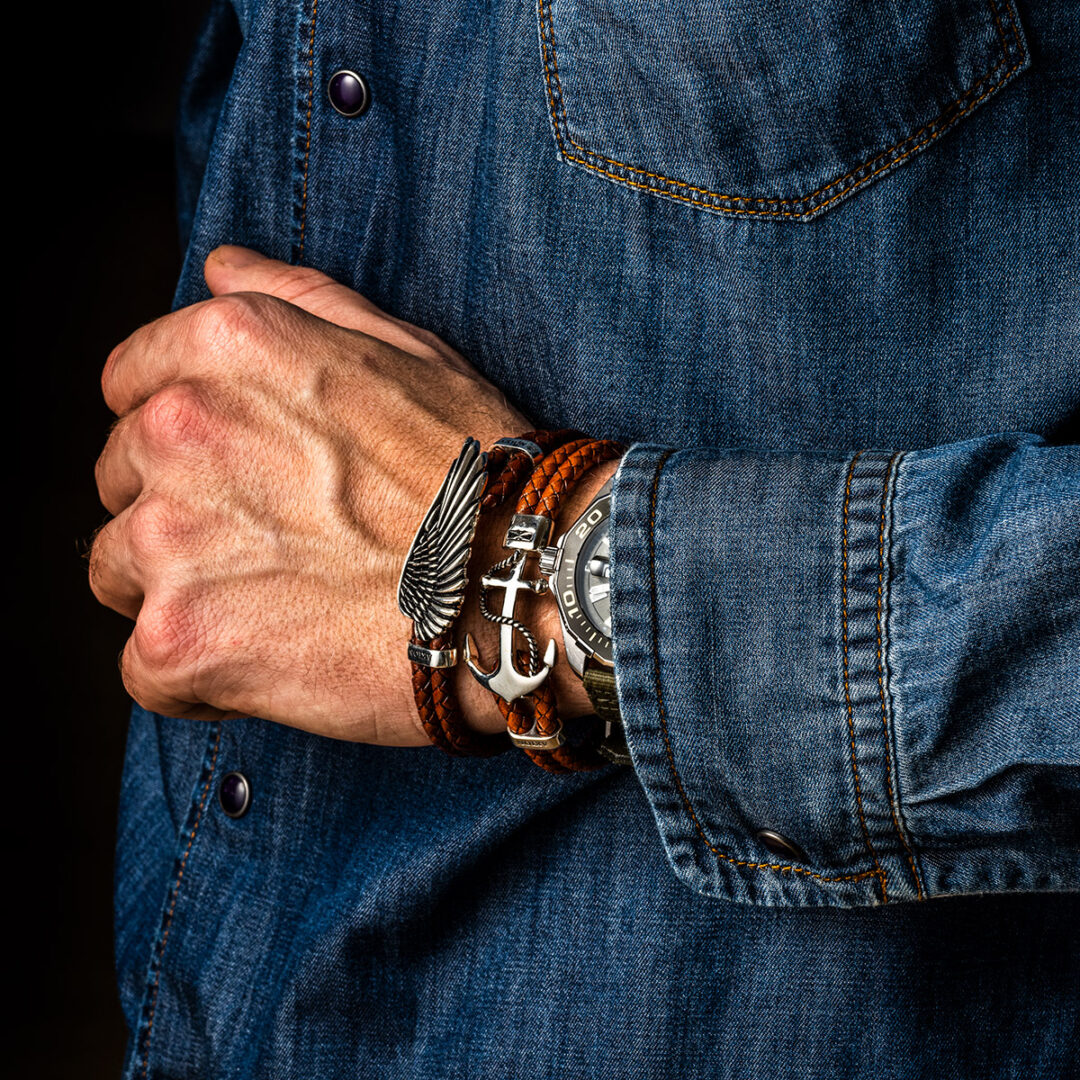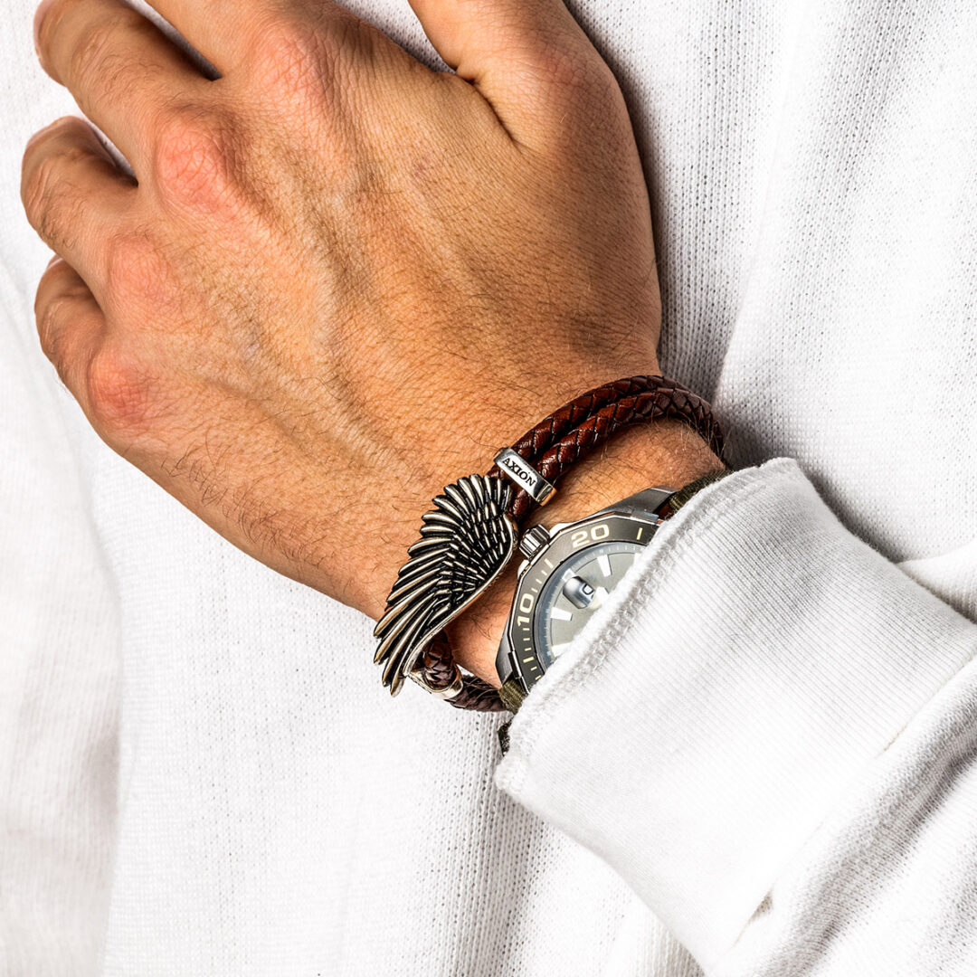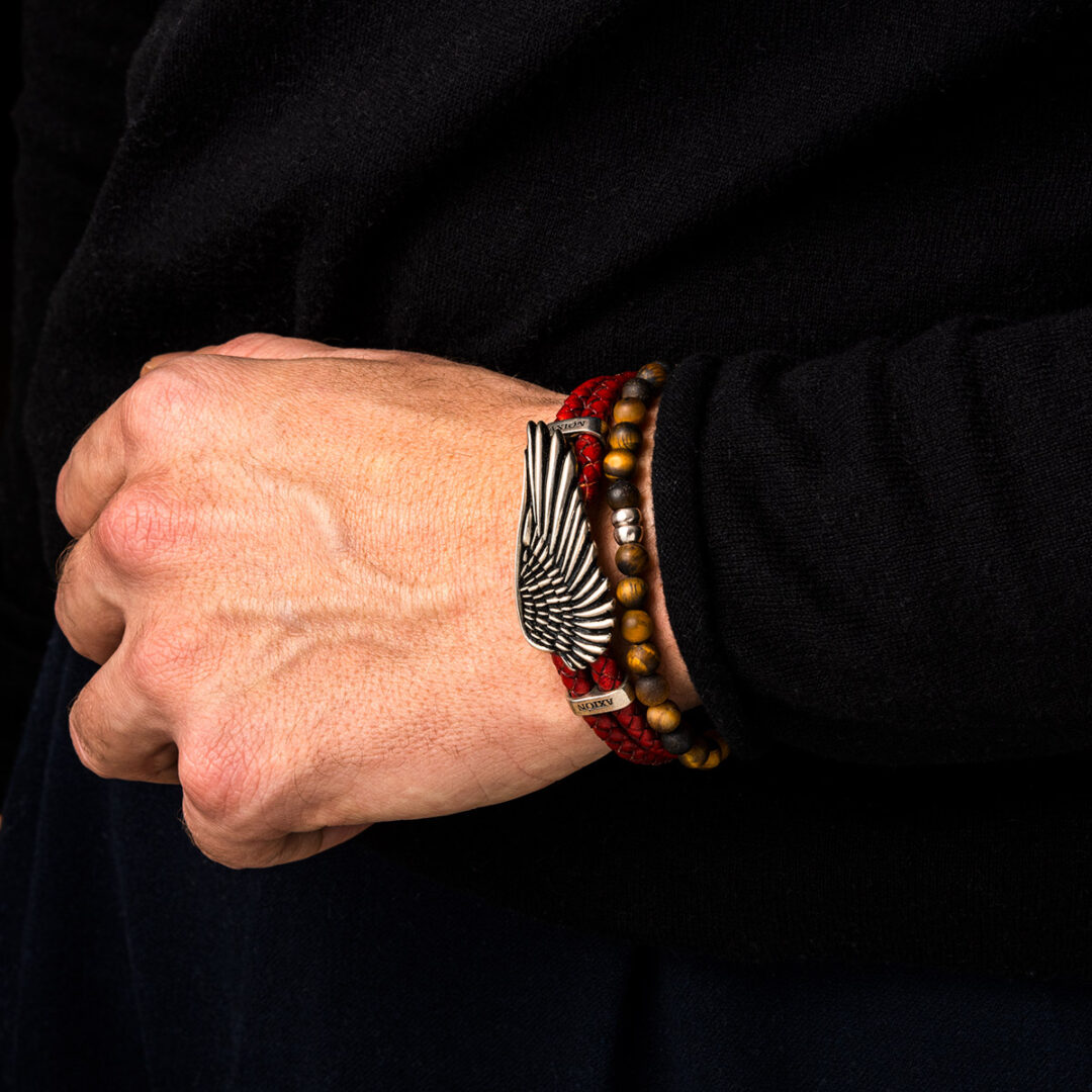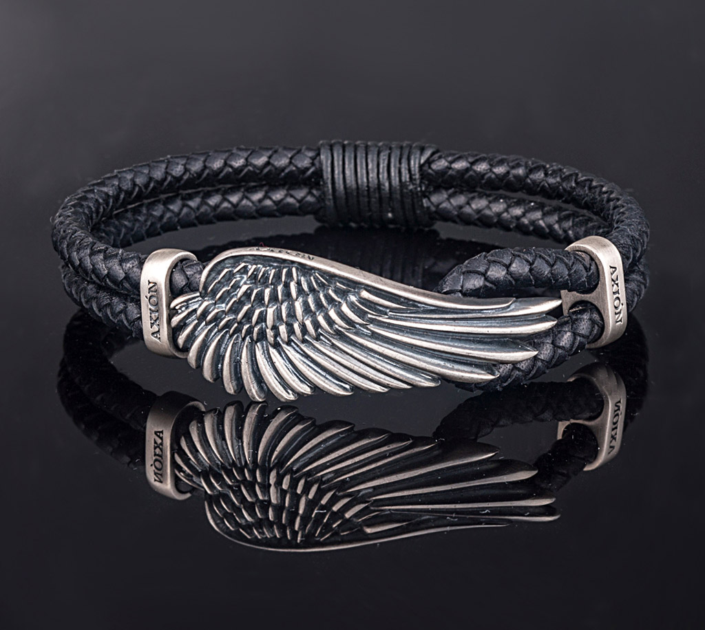 Sterling Silver Wing Bracelet Surrounded by Two Sterling Silver Bands Bracelet.