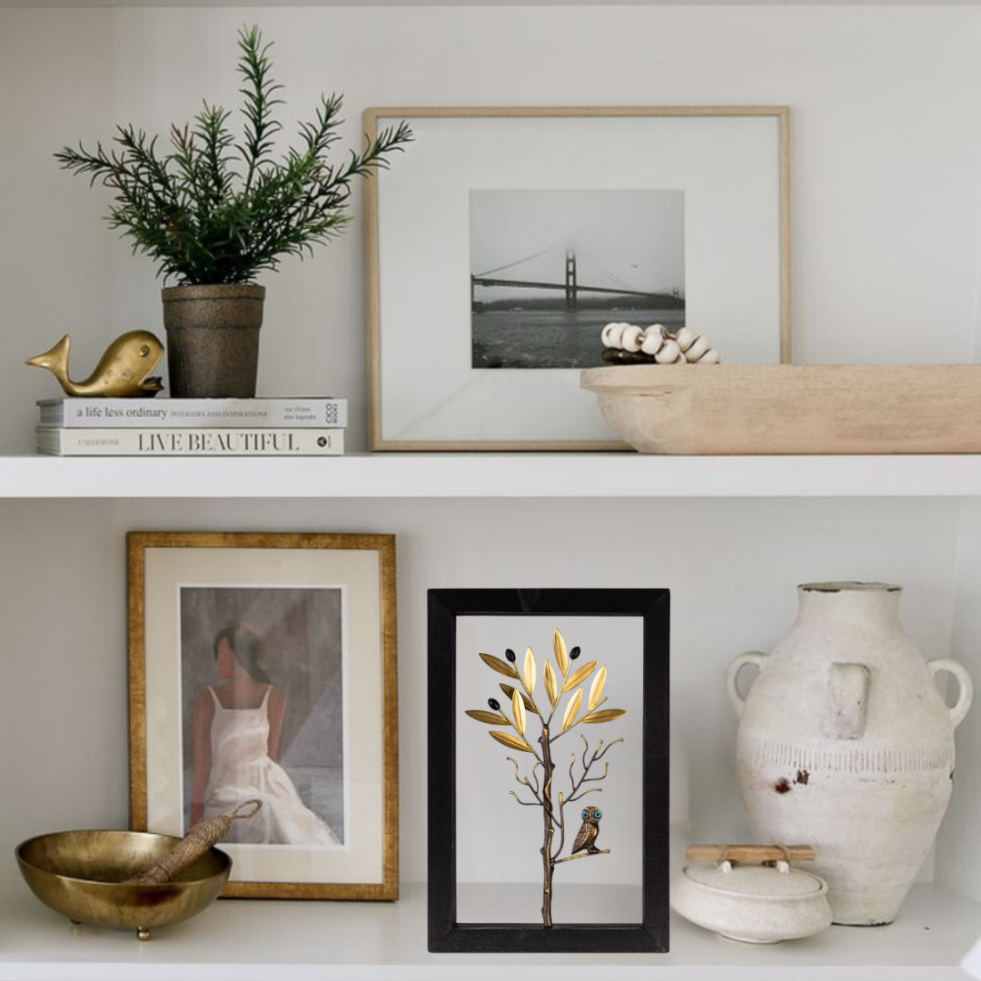 Owl sitting on the olive branch. This frame is inspired by the Ancient Greek history which represent the symbol of the Wisdom Owl.