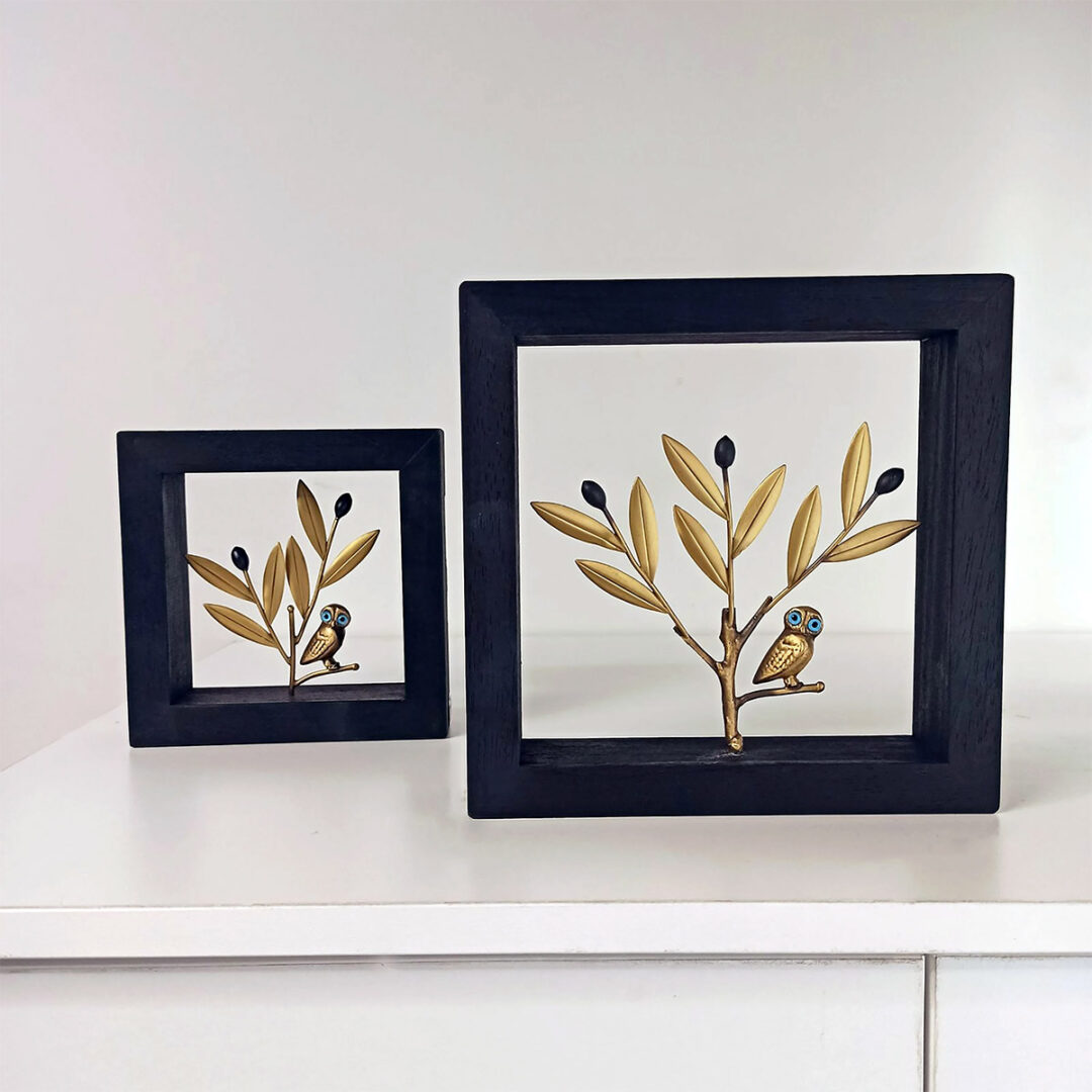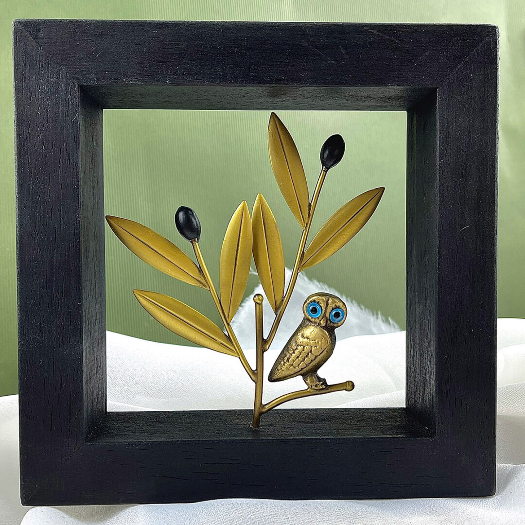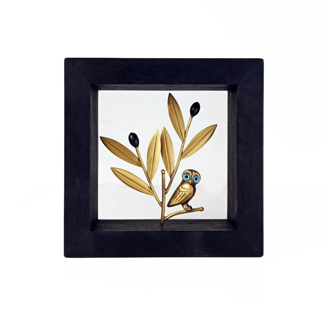 Owl sitting on the olive branch. This frame is inspired by the Ancient Greek history which represent the symbol of the Wisdom Owl.