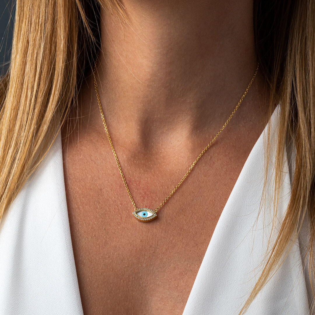 The symbol and superstition of the evil eye is one of the strongest symbolic images in the world. The earliest known evidence for belief in the evil eye goes back to ancient Greece and Rome. It is supposed to wear off evil to anyone who wears it and various cultures believe in that, however in Greece it’s blue because at that time blue eyes were not so common and were thought to give the evil eye, so the blue is like a mirror to them.