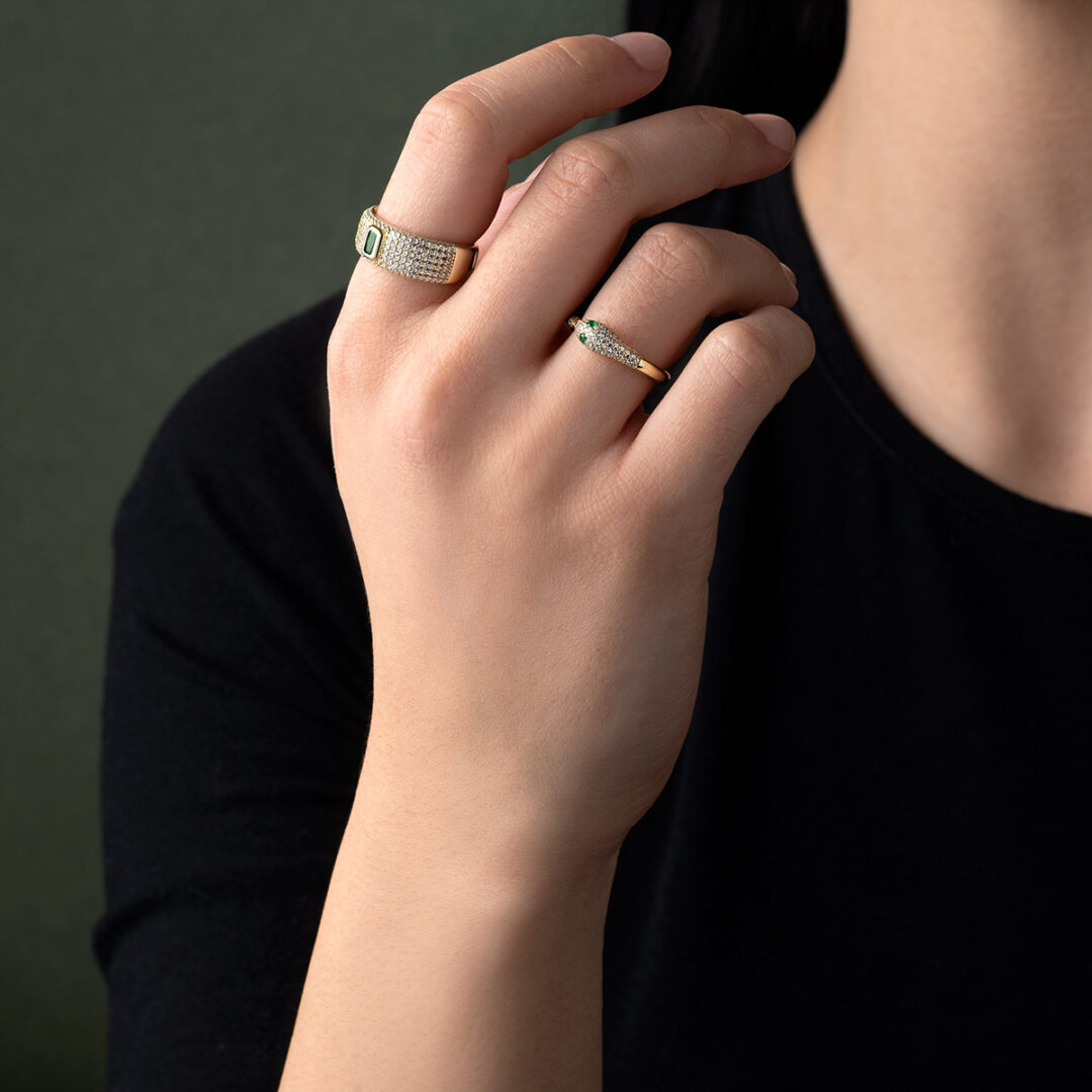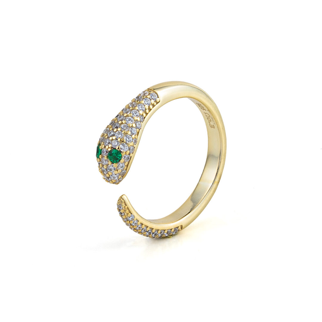 Zircon Snake Ring – Sterling Silver & Gold Plated